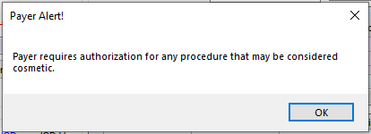 If a Payer Alert has been created in Payer Configuration, a red hyperlink will be visible indicating that there is a Payer Alert!: