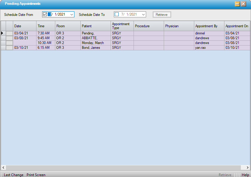 Retrieve/Schedule Pending Appointments