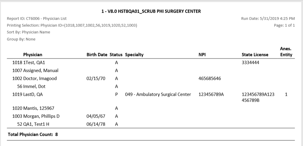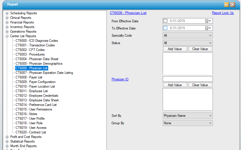 • If a physician has neither a From effective date nor a To effective date they will not show up on any report that specifies effective dates.