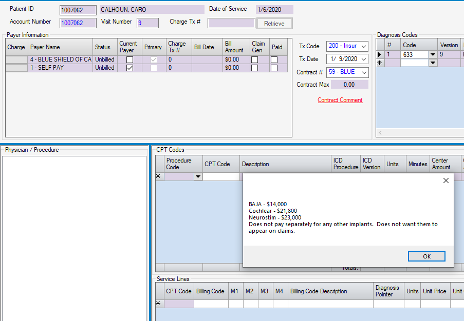 Comments entered in this free text field will appear as a hyperlink in Charge Entry. When selected, Billers can view the comments to aid in correctly entering Billed Fees as well as Contract Amounts.