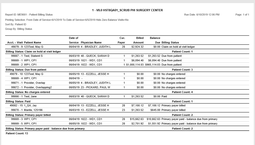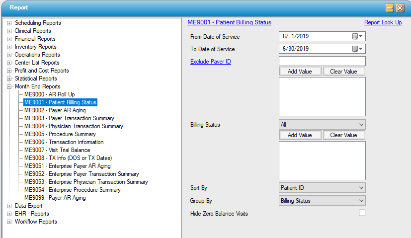 ME9001 – Patient Billing Status