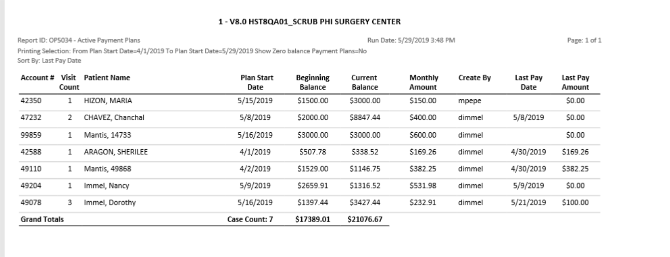 This report will provide information for the active Payment Plans that have been set up in HST, to ensure that payments are being made on time and equal to or greater than the agreed upon monthly installment. The Active Payment Plans report provides a summary view of payment plans with a balance by default.