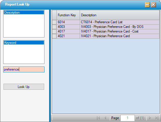 function. For more Preference Card printing options, go to Reports > Inventory Reports or select the Report Look Up hyperlink in Reports and type in Preference.