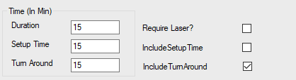 • Example: If Duration is 15 minutes and Turn Around time is 15 minutes and the box is checked to include Turn Around, the duration for this procedure will default to 30 minutes. If the box is not checked to Include TurnAround, the default would be only 15 minutes.