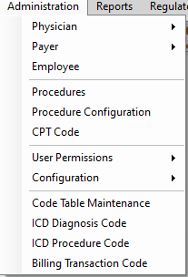 The center's Enterprise Configuration settings will determine which selections are available from the Administration Menu: Procedures and Procedure Configuration, or just Procedures.