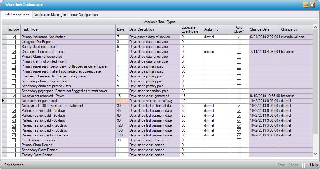 No Payment received – payer If no insurance payment has been received from the currently assigned payer within the days designated, a task will generate. When an insurance payment from the currently assigned payer is entered and posted, the task will auto close.