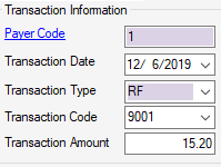 - Transaction Type will default to PY - Payment. Enter RF or select from drop down.